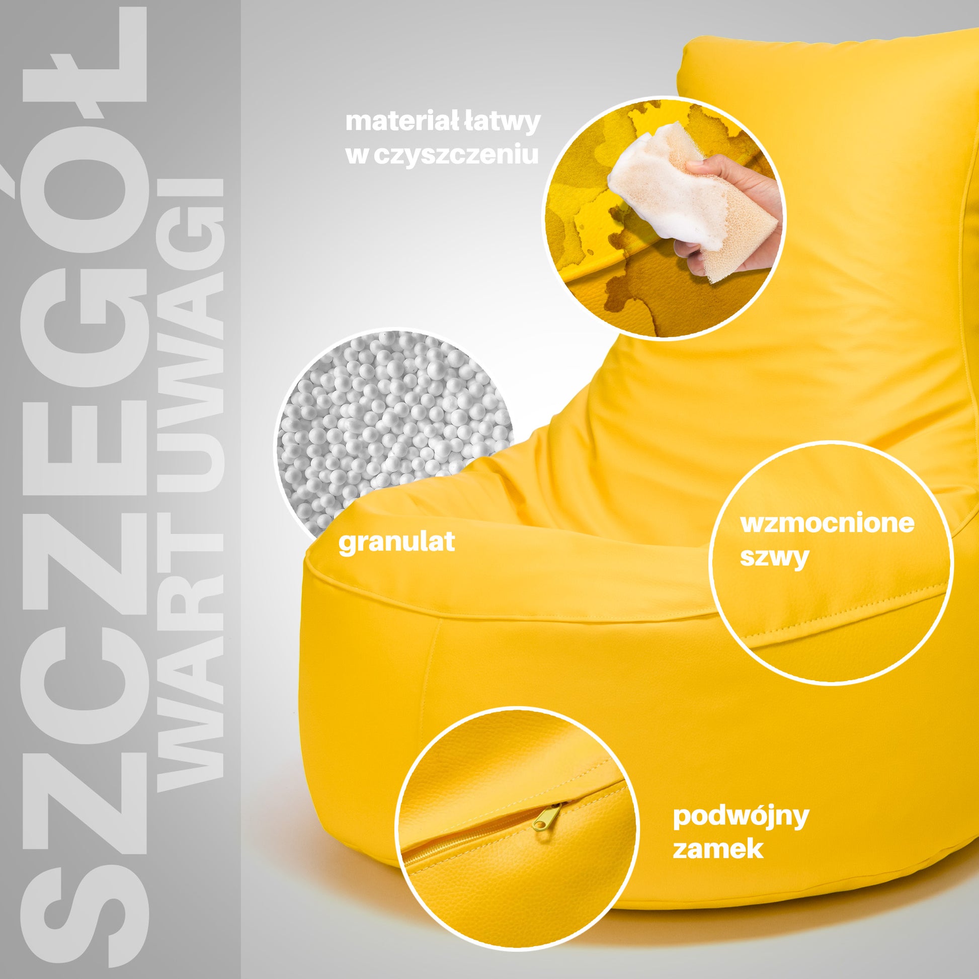 Questo modello è realizzato in ecopelle idrorepellente, leggera e durevole, con colori che non si alterano con l’esposizione alla luce. All’interno è riempito con microgranuli di polistirolo EPS che si adattano al corpo, assicurando comfort e un ottimo isolamento termico. La doppia cerniera garantisce una chiusura sicura e duratura.